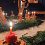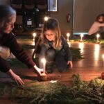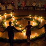 Con rami d’abete si dispone sul pavimento un percorso a forma di spirale e nel suo punto centrale viene acceso un cero.
